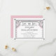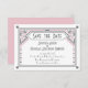 Variant sur l'un de nos modèles de papier à lettres Mariage les plus populaires, ce modèle d'annonce Save the Date présente un arrière - plan blanc avec des graphismes rose délicats rose et gris. Un double cadre rectangulaire en gris englobe le motif de style Gatsby Great Gatsby datant des années 1920.