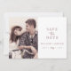 Cette photo de script en or rose rustique enregistrer la carte de date est parfait pour un mariage campagnard. Le design sobre et moderne rose or rose vif et blanc présente une calligraphie manuscrite et fantaisie unique avec un style boho minimaliste contemporain. Personnalisable dans n'importe quelle couleur. Gardez le design minimal et simpliste, en l'état, ou personnalisez-le en ajoutant vos propres graphiques et artwork.