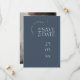 Augmentez l'anticipation de votre journée spéciale avec nos cartes Modern Royal Blue Opulence et White Simple Photo Wedding Enregistrer la date. Embossant simplicité et élégance, ces cartes combinent harmonieusement un design épuré et minimaliste avec la touche personnelle de vos moments chéris capturés dans une photo bleue et blanche royale. L'esthétique sombre de la palette sophistiquée ajoute une touche d'allure hivernale aux éléments modernes et traditionnels, créant un faire-part chic et intemporel. Chaque carte est une fusion harmonieuse de simplicité et de grandeur, offrant une déclaration minimaliste mais impactée qui résume magnifiquement l'essence de votre prochain mariage.