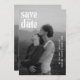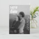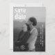 Mariage moderne enregistrez la carte de date avec un design simple et minimal avec une typographie contemporaine audacieuse sur votre photo préférée. La couleur des polices peut être changée en n'importe quelle couleur que vous choisissez dans l'outil d'édition de conception. Le dos a une deuxième image avec un champ pour du texte supplémentaire comme des détails supplémentaires ou votre site Web mariage.
