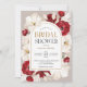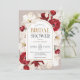 Une invitation à la douche nuptiale magnifiquement conçue avec des roses rouge rubis et des fleurs blanches douces, parfait pour célébrer la future mariée avec élégance et charme.