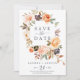 Cette terre fleurie rustique sauvez la carte d'annonce de date est parfait pour un mariage de automne. L'élégante décoration de tons de terre comprend des fleurs rustiques d'aquarelle en terre cuite, en cuivre, orange brûlé, pêche, rose roux et blanc crème avec style boho vintage.