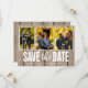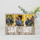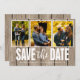 Announce your wedding day with this rustic country wood three photo collage save the date.