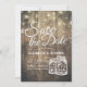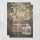 Save The Date Wedding Invitation Card Templates - Save The Date Lettering Script and Vintage Mason Jar String Lights on Rustic Wood Background.