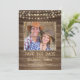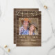 Rustic country wood and string lights photo design for your wedding SAVE THE DATE announcements. PHOTO TIP: For fastest/best results, choose a photo with the subject in the middle and/or pre-crop it to a square shape BEFORE uploading. Contact the designer via Zazzle Chat or makeitaboutyoustore@gmail.com if you'd like this design modified, on another product or would like other coordinating items.