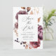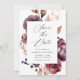 Elégant thème automne, sauver la date avec l'aquarelle fleurs d'automne et feuillage dans les tons de bordeaux, marsala, violet, orange et marron. "Save the Date" s'affiche dans un script de calligraphie moderne avec vos noms et les détails mariages ci-dessous. L'arrière de la carte affiche votre photo fiançailles verticale à fond saigné. Le floral d'automne enregistrer les coordonnées de la date avec notre collection de mariages floraux d'automne rustique.