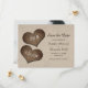 Mariage campagnard rustique enregistrer la date cartes photos avec deux coeurs de burlap sur un arrière - plan de burlap léger. Photo personnalisée à l'arrière.