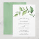 Rustique enregistrer la carte de date avec un design simple avec une aquarelle verte peinte avec de grands feuilles, sur un arrière - plan blanc. Ci-dessous vous trouverez vos détails dans un gris doux et le côté arrière a un lave-couleur vert clair. Un design botanique élégant qui est parfait pour une fête en été.