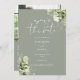 Cette élégante arche feuille en or vert sauge verdure saute l'invitation de la date peut être personnalisée avec vos informations en typographie chic avec votre photo spéciale et le site mariage QR code et les détails sur l'inverse. Conçu par Thisisnotme©
