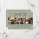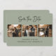 Elégante photo de mariage vert sage personnalisée enregistrer les cartes de date avec un titre de script moderne. Personnalisez facilement ce vert sauge enregistrez la date avec vos images et les détails du mariage, y compris un site Web mariage.