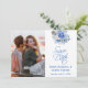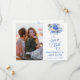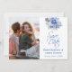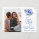 Capturez votre amour avec cette élégante sauvegarde de date photo avec des fleurs bleues poussiéreuses douces. Un choix romantique et intemporel pour les mariages de printemps, de jardin ou classiques. Ajoutez votre photo préférée pour une touche personnelle à votre annonce.
