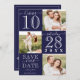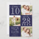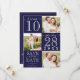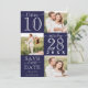Cette carte de mariage moderne et simple "Save the Date" est parfaite pour l'événement contemporain et tendance. Le design comprend trois photos principales du beau couple, une grande date en surbrillance et la phrase "Save Our Date", alternant dans un script manuscrit signature et une police serif unique. Au dos se trouve une bordure à rayures et un monogramme de couple. La palette de couleurs est minimaliste en bleu marine et blanc. C'est élégant, unique, tendance, audacieux et classique ; le design parfait pour impressionner vos invités.