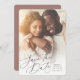 Une conception simple et élégante avec vos détails mariages alignés en bas, cette photo verticale enregistrer la date dispose de délicat, ethérée script écrit à la main. Personnalisez avec vos noms, votre date de mariage et votre emplacement à côté en lettres noires douces, et ajoutez des détails supplémentaires au dos.