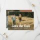Ce mariage à la mode et vintage style enregistrer les cartes de date comporte un script blanc rétro sur le devant comme une superposition sur votre photo. Le dos a un boho, marron en terre cuite texte arrière - plan et crème d'ivoire, et une autre photo, avec un code QR scannable pour ajouter votre site mariage.