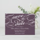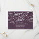 Élégant enregistrer les cartes de date dans la prune d'aubergine foncé et blanc fonctionnalité embellisé écriture de script pour un look classique et formel.