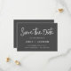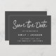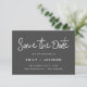 Gris de charbon de bois (Gris) Moderne et élégant minimaliste à la main Script lettré Enregistrer la date Carte postale Mariage. La carte d'invitation à la date inclut une typographie de script à la main moderne avec un design chic et simple auquel vous pouvez ajouter votre photo de fiançailles customisé à.