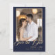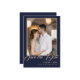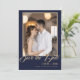 Cet élégant et moderne mariage doré et bleu sauvez l'invitation de date dispose d'un élégant script or sur un arrière - plan bleu avec votre propre photo. Le texte peut être personnalisé en modifiant les zones de texte. La couleur située à l'envers de l'invitation peut être modifiée dans l'éditeur. Conçu pour vous par Evco Studio © à www.zazzle.com/store/evcostudio #mariage #savethedate #invitation #invitation #weddinginspiration #contemporain #simple #élégant #design #moderne #populaire #topsellers #topsales #coutume #tendance #mariage hivernal #springWednois #autumnmariage #fiançailles #papeterie #personnalisée #destination #personnalisée #classique #classique #editable