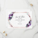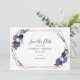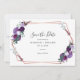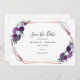 Elégant violet fleurs rose or cadre géométrique mariage floral enregistrer la carte de date que vous pouvez facilement customiser avec vos détails en cliquant sur le bouton "Personnaliser". Caractéristiques typographie populaire moderne avec texte de script en noir sur blanc arrière - plan CONSEIL : Produits correspondants disponibles ci-dessous pour votre commodité