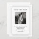 Le design est épuré et classique, noir et blanc, ce qui le rend minimaliste et élégant. Il dispose d'une simple bordure à deux lignes avec des détails d'angle ronds qui encadrent la disposition. Il y a aussi une photo au centre que le couple peut personnaliser. Le mélange de polices de script et de serif est comme la calligraphie traditionnelle, mais avec une touche moderne. Un bon choix pour les couples qui aiment le style minimaliste avec une touche de charme vintage.