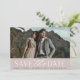Une carte de datation moderne conçue pour accommoder votre photo de fiançailles à fond à orientation horizontale ou paysagère préférée. "Enregistrer la date" apparaît sous votre photo en bloc chic et en écriture de script, ainsi que vos noms, date mariage et emplacement du mariage. Les cartes sont inversées pour révéler d'autres détails enregistrer la date.