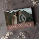 Une carte de datation moderne conçue pour accommoder votre photo de fiançailles à fond à orientation horizontale ou paysagère préférée. "Enregistrer la date" apparaît sous votre photo en bloc chic et en écriture de script, ainsi que vos noms, date mariage et emplacement du mariage. Les cartes sont inversées pour révéler d'autres détails enregistrer la date.