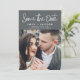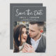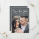 Photo manuscrite moderne et élégante Enregistrer la carte Mariage de date. La carte d'invitation enregistrer la date comprend une typographie chic et élégante avec un design simple et minimaliste sur un arrière - plan gris fusain (gris) auquel vous pouvez ajouter votre photo de fiançailles customisée.