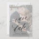 Elégant romantique chic script de calligraphie lettré noir et blanc mariage enregistrer le modèle de date avec votre photo personnalisée et la couverture blanche transparente. +++++++++++++ Facile à personnaliser avec vos détails et photo fiançailles des deux côtés ! +++++++++++++ Convient pour toute saison élégante mariage classique.