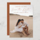 Annoncez votre prochain mariage dans le style avec ce code moderne en terre cuite QR de script moderne enregistrer la carte de date! Le design des caractéristiques "Save the Date" affiché dans la calligraphie en terre cuite tendance superpose avec votre photo fiançailles plein sang, verticale. Personnalisez l'avant du minimaliste enregistrez la date avec vos noms, date du mariage et emplacement. Le verso de la carte affiche une image supplémentaire avec un code QR que les invités peuvent scanner pour visiter votre site mariage. Le chic terracotta save the date est le choix idéal pour les mariages modernes.