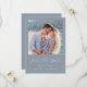 Cette simple et minimaliste carte Save the Date présente une photo carré au-dessus des mots "Save the Date" dans un élégant script d'écriture manuscrite blanche, suivie des noms du couple, date mariage et ville en sans serif police sur un arrière - plan bleu poussiéreux. Ajoutez un message plus détaillé avec des informations supplémentaires sur l'inverse, ainsi qu'un code QR pour aider les invités à accéder à votre site Web mariage.