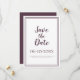 Annoncez votre prochain événement avec notre moderne et simple violet et blanc Save The Date mariage faire-part! La suite Invitation présente un design minimaliste avec une bordure à double cadre en violet CASSIS tendance sur un arrière - plan blanc immaculé. Le libellé traditionnel apporte une sophistication intemporelle et moderne. Personnalisez le design mariage avec vos prénoms et votre nom de famille et la date en lettres et scripts Cassis pourpres tendance. Le dos de la carte est assorti à un violet solide.