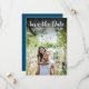 This modern script photo save the date card features your special photo overlayed with a script save the date above your names, date and venue in white text.
