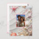 Save the Date postcard with your favourite photo. Beautiful tropical seashells, pink starfish, and pink and white pearls on a white sand beach. Perfect for your destination wedding.