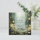 Un sentier forestier éthéré de fleurs et d'arbres est présenté dans cette invitation magique de mariage vert sauge enchanté, avec des lumières scintillantes.