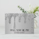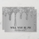 Serez-vous ma demoiselle d'honneur ? Douche nuptiale. Argent, gouttes de parties scintillant, étincelant, lunatique, élégant, moderne, script, Mariage enregistrer les invitations de date. Veuillez le personnaliser avec vos détails.