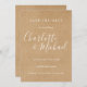 Doté de noms de style signature, cet élégant kraft rustique enregistrer la carte de date peut être personnalisée avec vos informations spéciales de mariage en lettres blanches chic. Conçu par Thisisnotme©