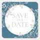 Save the Date Silver Blue Victorian Floral Lace Square Sticker