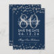 Save The Date Silver Navy Blue 80th Birthday Save Date Confetti