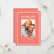 Moderne et simple, le design du cadre photo Save The Date présente votre photo fiançailles préférée encadrée par un cadre blanc immaculé sur un arrière - plan corallien riche et tendance. Personnalisez et partagez vos détails de fiançailles et de mariage avec vos invités en lettres blanches et en écriture. Le design est complété par un cadre moderne double en blanc. Le dos de la carte est en corail massif.(Pour un meilleur placement de votre image, utilisez un outil de retouche photo pour centrer et recadrer AVANT de télécharger sur le site Zazzle.) Ce design de configuration de portrait (hauteur supérieure à largeur) fonctionne magnifiquement avec des photos de gros plan et des photos rectangulaires de pleine longueur de vous et de votre fiance. Choisissez votre préféré ! Contactez invitationsuites@gmail.com pour toute question ou demande personnalisée.