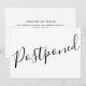 Cette carte de report simple noir et blanc peut être personnalisée avec les informations de votre événement annulé. Le verso contient des détails supplémentaires pour que vous puissiez mettre à jour vos invités. Conçu par Thisisnotme©