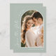 Faites plaisir à vos invités mariages pour votre journée spéciale avec cette photo moderne vert sauge deux photos enregistrer la carte de date. Avec un design d'arc avec des vibes de boho, cette carte est parfaite pour afficher deux superbes photos de vous et de votre partenaire et est garantie pour que vos invités soient excités pour la grande journée. Alors, faites une déclaration avec cette unique enregistrer la carte de date et laisser le mariage planifier commencer!