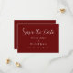 Simple et moderne blanc sur fond rouge mariage « Enregistrer la date ». Parfait pour un mariage en toute saison.