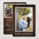 Annoncez la date de votre mariage à vos amis et à votre famille avec cette simple et élégante Simple Faire Enregistrer Photo Date Mariage. La conception de l'annonce comprend un riche fond en bois et des emplacements pour trois photos du couple heureux, complétés par une conception de texte moderne.