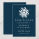 Annoncez votre mariage d'hiver avec style avec notre Simple Save the Date flocon de neige marine. Caractérisé par un flocon de neige blanc gras et "Save the Date" en lettrage élégant serif et calligraphié sur un fond marine, ce design capture la beauté de l'hiver. Personnalisez avec vos noms, date de mariage et lieu ci-dessous. Parfait pour les mariages d'hiver, de vacances et de Noël, ce save the date donne le ton pour une célébration magique.