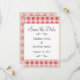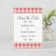 Simple plaid rouge/en vichy doux enregistrer la date pour un mariage de ferme de campagne.