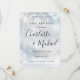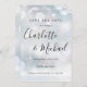 Doté de noms de style signature, cette élégante carte d'enregistrement de la date peut être personnalisée avec vos informations de date spéciales en lettres grises chic sur un arrière - plan de gel d'hiver. Conçu par Thisisnotme©