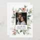 Ce délicat bouquet d'aquarelle aux couleurs traditionnelles de Noël, vert de la forêt, vert d'olive et rouge canneberge sur le blanc éclatant. La photo fiançailles préférée de la mariée et du marié est présentée au centre du bouquet avec les détails mariages directement ci-dessous. Le côté arrière est vide. Tout le texte peut être modifié pour répondre aux besoins de votre événement. Coordonnées avec la collection de Mariages de Noël pour le Berry d'hiver. REMARQUE : Si vous préférez une carte Enregistrer la date pour partager plus de détails de votre mariage, consultez la collection complète et recherchez une autre version que j'ai créée avec du texte supplémentaire au verso.