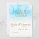 Sous le Palm Sky Save La Date est une aquarelle bleu ciel tropical avec des accents de palmier. Sur l'arrière le même bleu ciel et l'aquarelle de palmier avec les initiales pour la mariée et le marié.