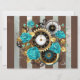 Save The Date Steampunk Clock and Turquoise Roses on Striped