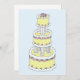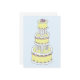 A multi tiered, stylish, pastel coloured three tiered cake set against a pastel blue coloured background.