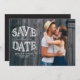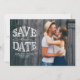 Carte de sauvegarde de date de mariage personnalisable avec superposition de typographie rustique. Cette carte de sauvegarde de date de photo est parfaite pour les mariages d'automne.